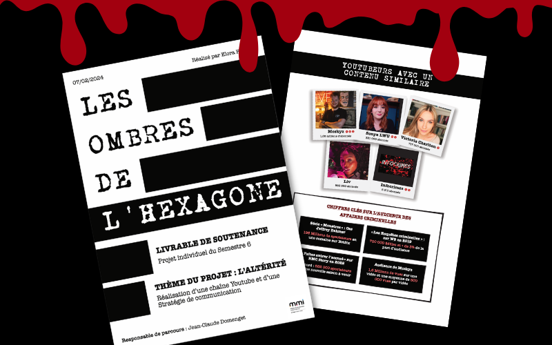 J’ai conçu et développé une chaîne YouTube fictive intitulée "Les Ombres de l’Hexagone", centrée sur les affaires criminelles françaises. Mon travail a consisté à imaginer un concept éditorial complet, produire un trailer vidéo autour du tueur en série Guy Georges, et construire l’ensemble de l’univers de la chaîne.
