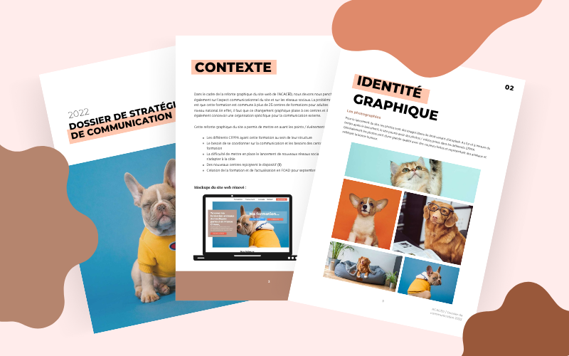 Dans le cadre de mon alternance au CFPPA de Valdoie, j’ai été chargée de concevoir un dossier de stratégie de communication pour la formation ACACED (Attestation de Connaissances pour les Animaux de Compagnie d’Espèces Domestiques), partagée par plus de 25 centres de formation en France.